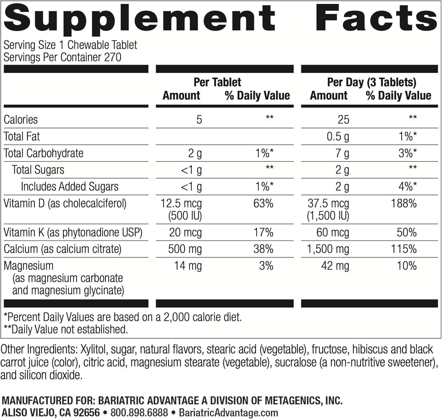 Bariatric Advantage Chewable Calcium Citrate tablets are specially formulated for bariatric patients.